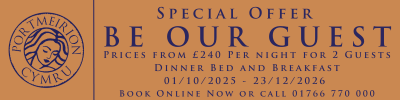 Book Dinner, Bed and Breakfast at Portmeirion between 01/10/2025 - 23/12/2025 from just £240 per night for 2 guests sharing a village double room.